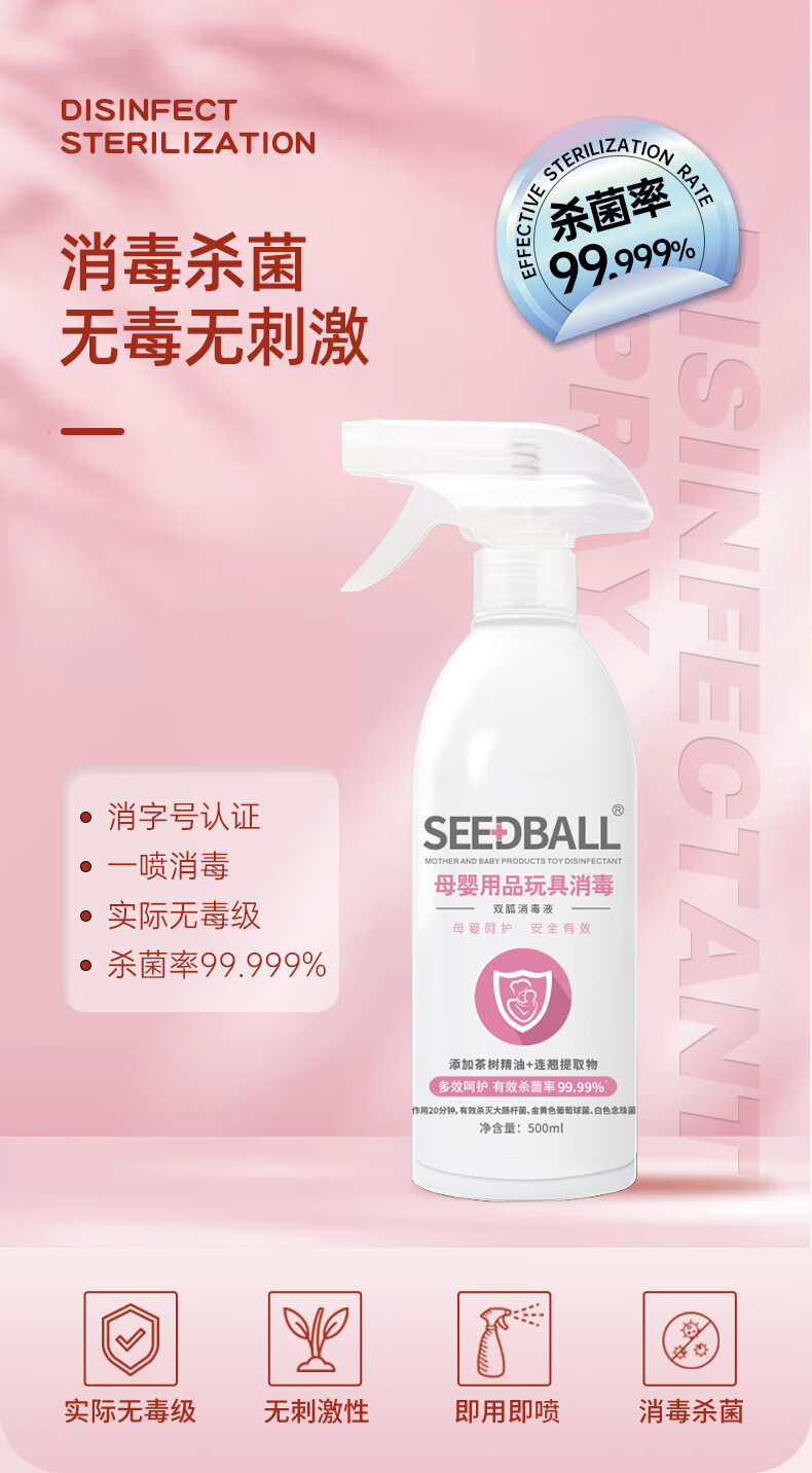 SEEDBALL家用母婴消毒液喷雾液500ml 无酒精喷雾剂 空气衣物儿童