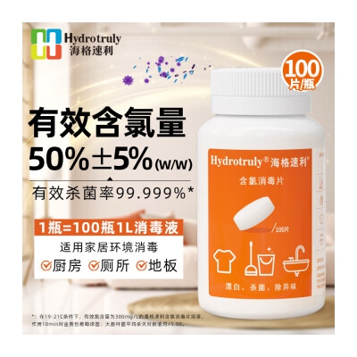 海格速利含次氯酸泡腾消毒片井水杀菌漂白家用厨房厕所马桶宠物用品消毒液 【实惠单瓶】消毒泡腾片*100片