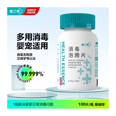 健之素消毒泡腾片全效含氯 100片/瓶家用洗衣机槽拖地浴缸马桶消毒